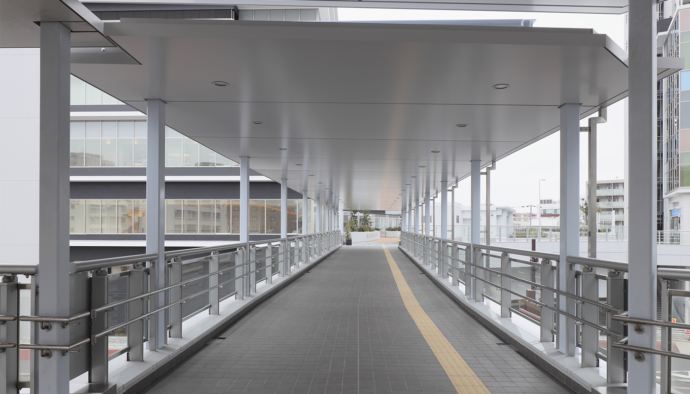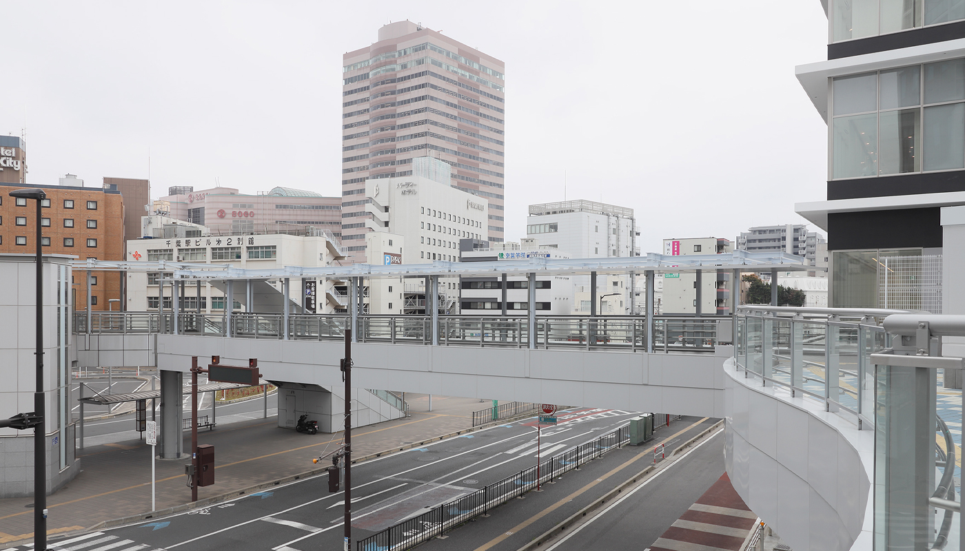 千葉駅西口地区B工区第二種再開発事業における基盤施設(歩行者デッキ)の詳細設計を行った。駅と商業施設・病院を改札階レベル(2F)で接続、駅と西口地区との回遊性を高め、施設利用者及び周辺住民に対する利便性向上を図った。