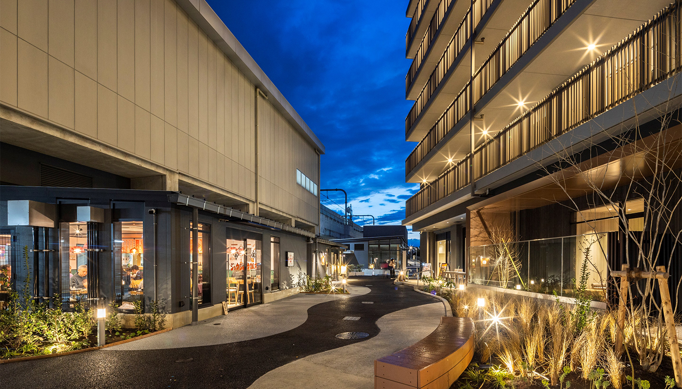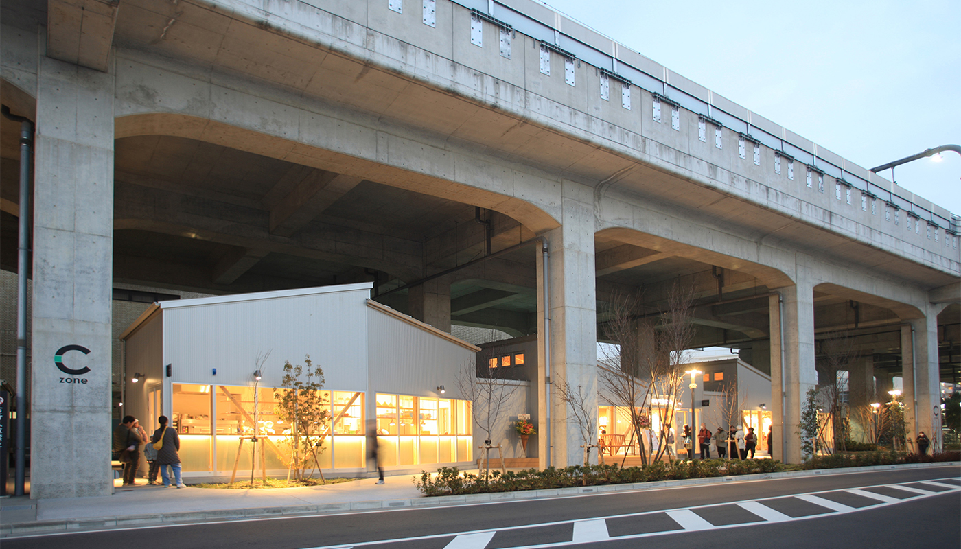 相鉄線の連続立体交差事業に伴う、高架下空間の活用を目指した物件である。当室では各種許認可取得を含む開発設計と開発工事監修を実施。