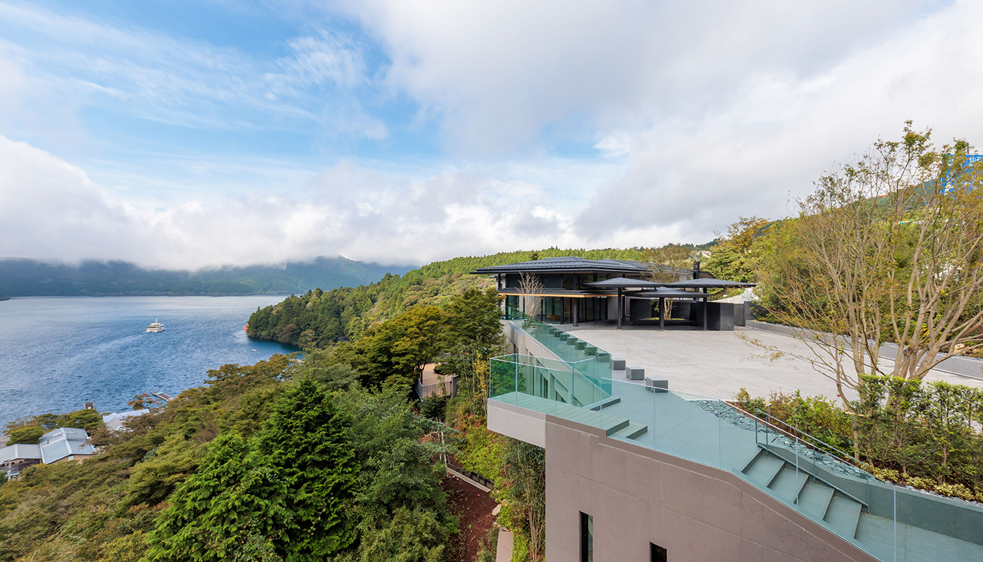 敷地は芦ノ湖を一望できる絶景が素晴らしい立地であったが、土砂災害特別警戒区域に近接した敷地であり、防災上の安全性を確かめる作業から検討が始まった。造成計画及び排水計画においては設計基準のみならず、近年頻発する豪雨・長雨の際にも安全性を発揮できるよう設計を行った。