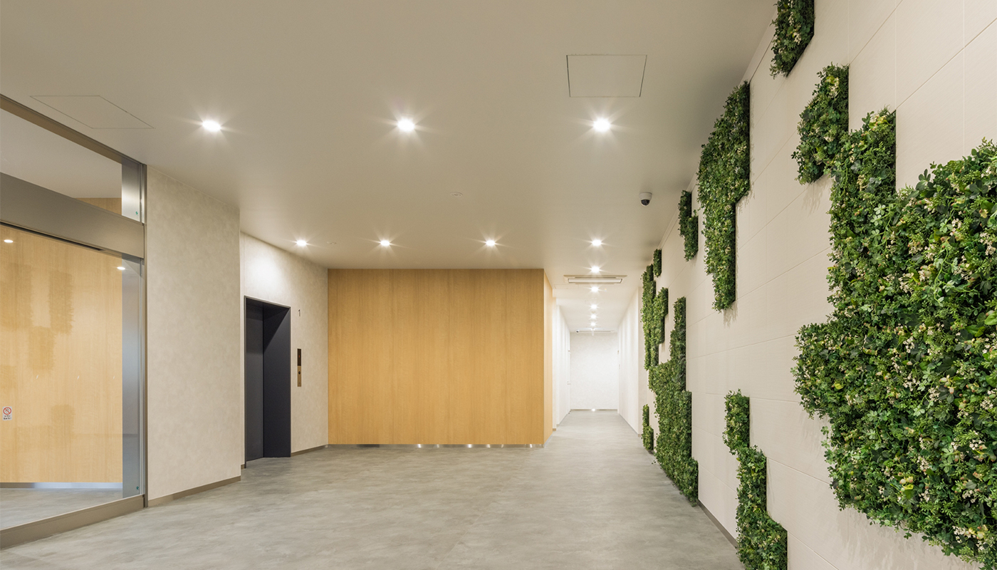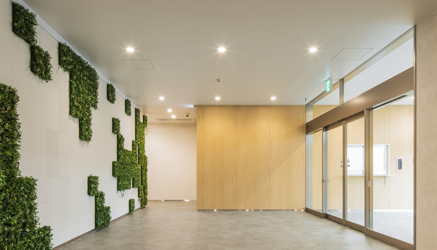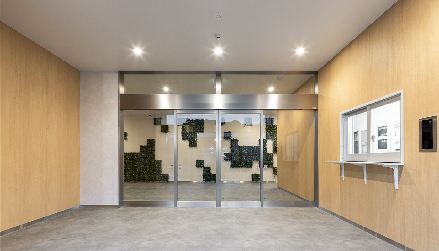 神奈川県綾瀬市に建つS造4階建てBOX型物流施設の計画。意匠は外観の鮮やかな青と白の配色が工業団地の中でもひときわ目立つ。建物の顔となるエントランス正面の壁面は、航空写真をもとに綾瀬の田園エリアを緑化ブロック、綾瀬の目久尻川・比留川・蓼川の3 河川を凹凸のあるタイルで表現し、綾瀬の自然豊かな美しいまち並みを壁面で表現した。建物内は中央で2 区画に分割可能なフレキシブルな配置計画としている。構造は標準スパン11.5m×10.6m を確保した計画とし、設備は全館LED 照明や節水型衛生器具を採用し環境に配慮した計画とした。