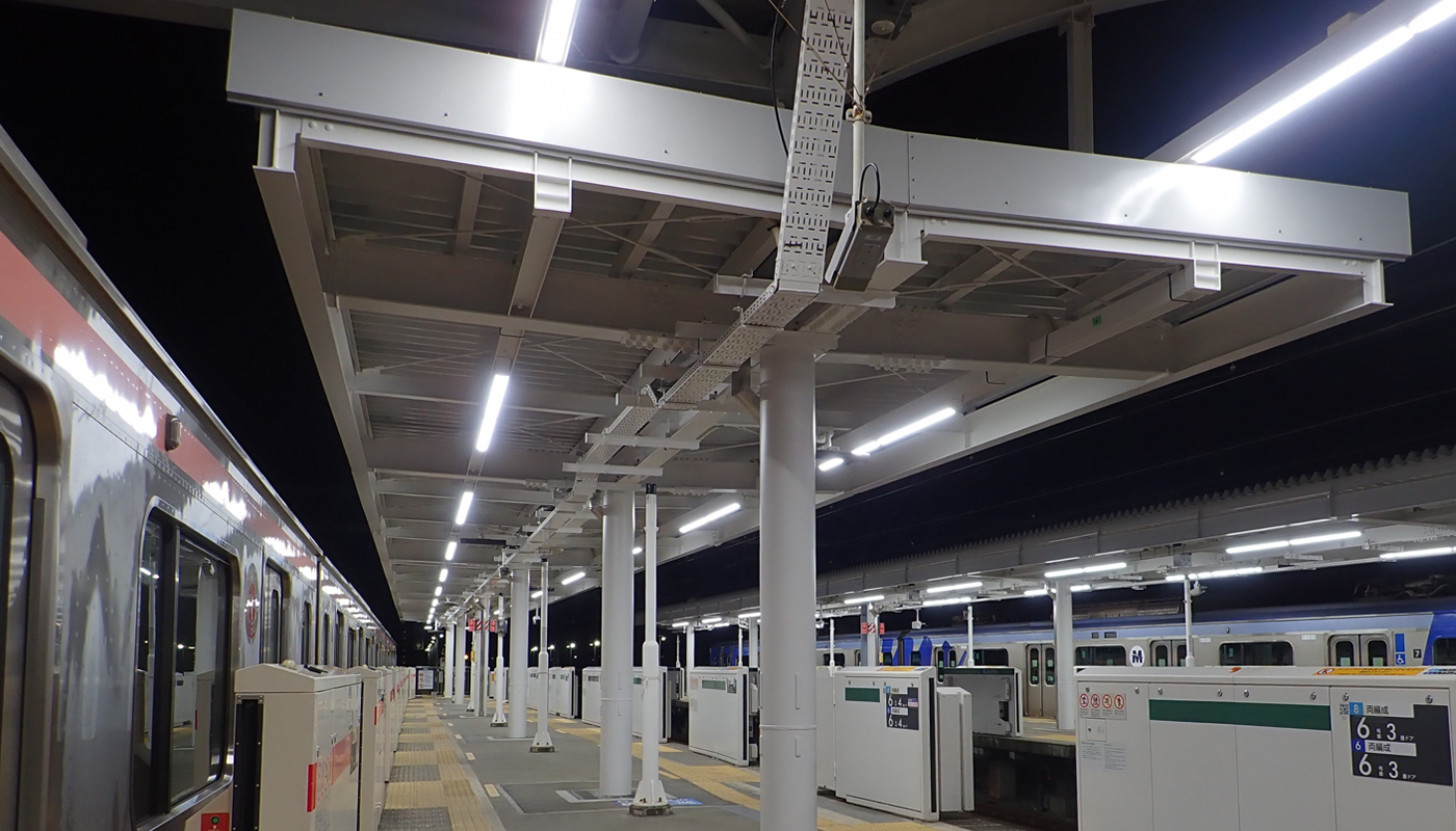 目黒線8両化にともない、元住吉駅(2006年竣工 当社設計)のホーム上家延伸を行った。